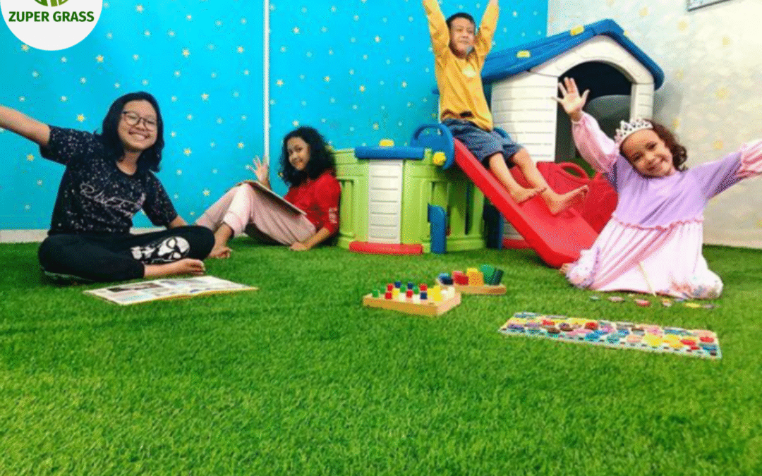 Rumput sintetis cocok untuk area bermain anak karena teksturnya lembut dan aman. Banyak sekolah, daycare, dan PAUD menggunakan rumput sintetis untuk mempercantik sekaligus melindungi anak dari benturan saat bermain.